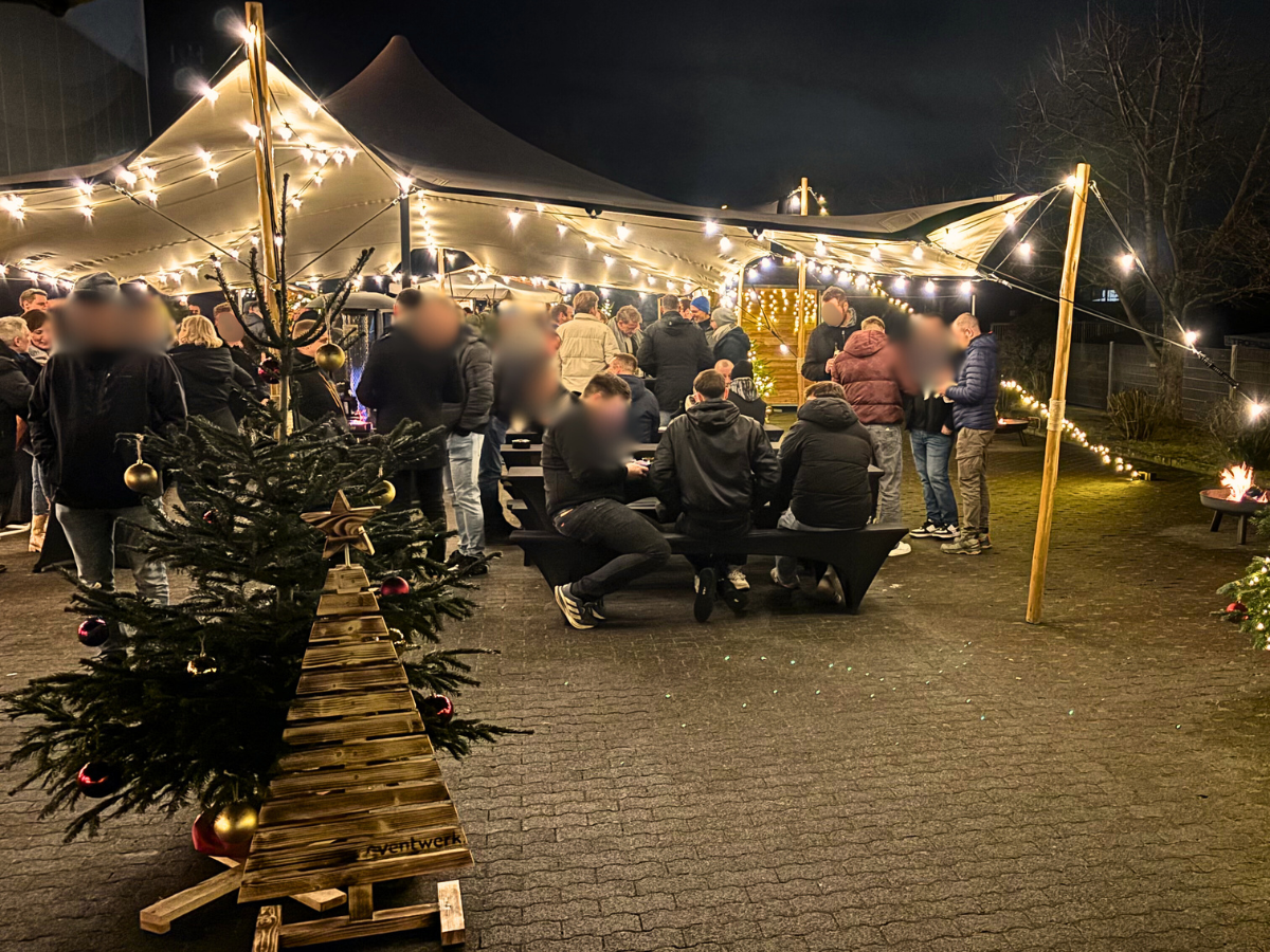 Lichterketten, liebevolle Dekorationen, Buden und Hütten verwandelten das Gelände in ein festliches Winterdorf, das sofort zum Verweilen einlud. Zwischen knisternden Feuerschalen, beheizten Stehbereichen und gemütlichen Treffpunkten entstand eine warme Atmosphäre, die Begegnung und Austausch förderte.